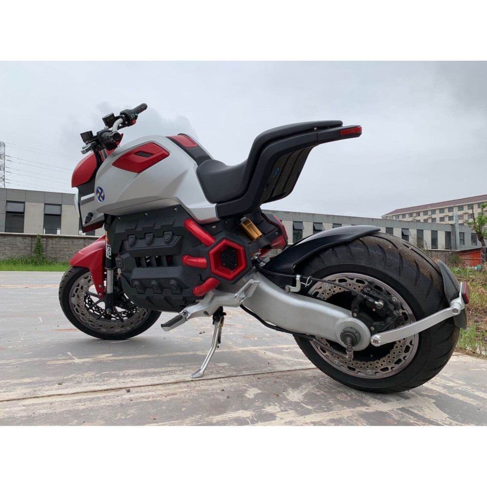 Модель весом 105 кг, способна развивать скорость до 100 км/час. В сочетании с емким АКБ передвижение вместе с байком превращается в длительное экстремальное путешествие, насыщенное массой положительных эмоций. Качественная тормозная система, надежные крылья, амортизационная часть делают езду безопасной, скоростной и плавной.
