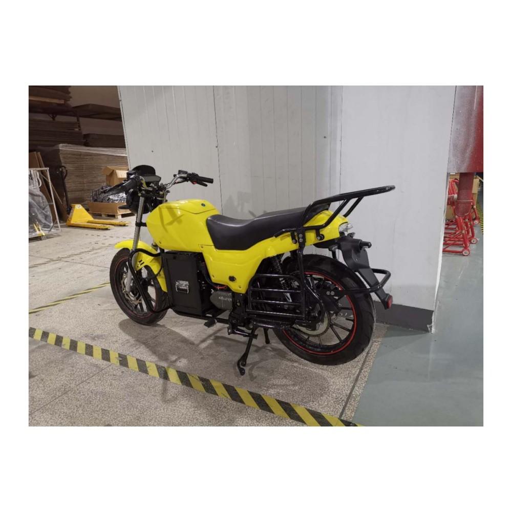 Движок имеет мощность 3800 Вт, при этом номинально может выдать до 5200 Вт. Высокие показатели обеспечиваются оснащением девайса батареей с напряжением 78 В и большой емкостью 64 Ач. Время полной зарядки от обычной розетки составляет всего 4 часа, что является несомненным плюсом техники. Райдер свободно сможет проехать до 150 км на одном заряде при максимальной скорости 80 км/час. Максимальная грузоподъёмность 120 кг, рассчитана на взрослых пользователей обеих полов. Двухподвес на передних и задних амортизаторах подойдет для катания в условиях пересеченной местности. Производитель гарантирует полную остановку электромотоцикла на любой скорости, благодаря фирменной тормозной системе, состоящей из передних и задних дисковых тормозов. Удобное сидение имеет высокие эргономические показатели, что позволит подолгу находится в дороге. Оригинальные колеса на усиленных покрышках имеют мощные протекторы для большей проходимости.
