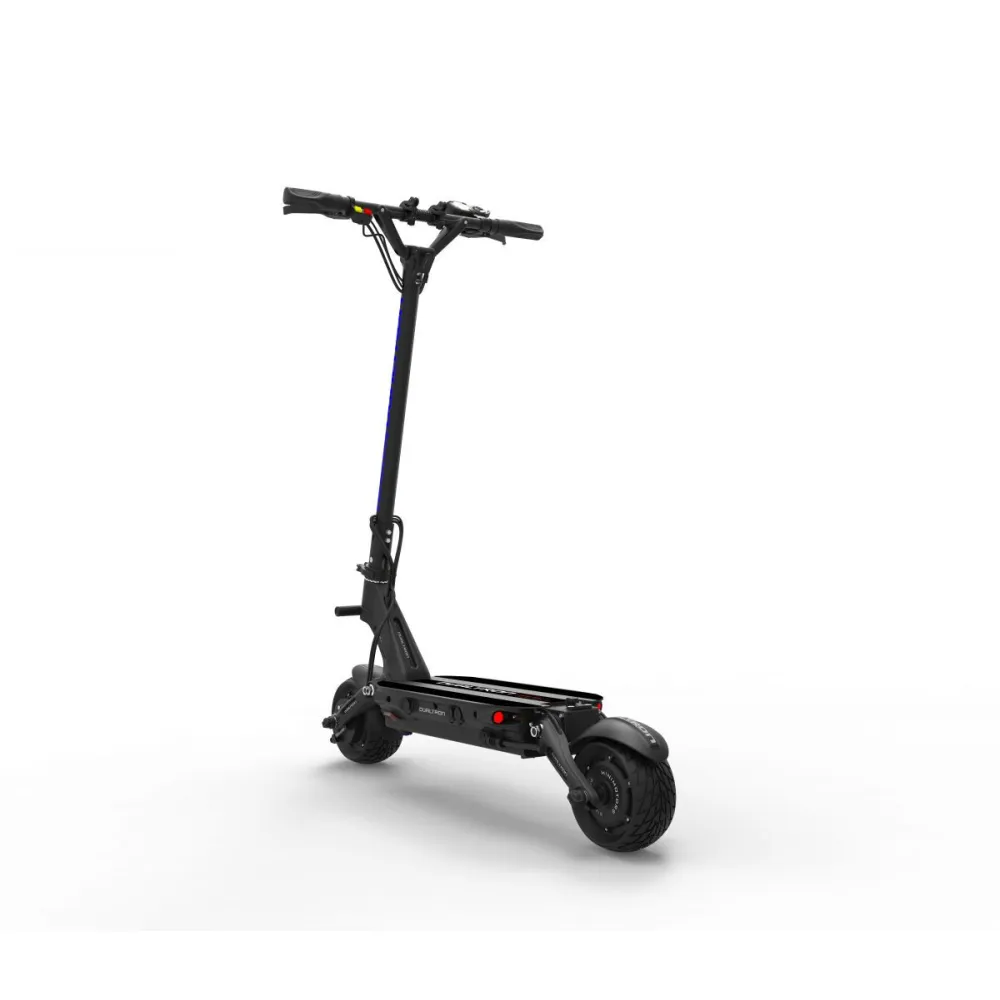Модель самоката достаточно скоростная ее максимум 55 км. Каждое колесо оборудовано мотором мощностью 800 Вт, что в сумме дает 1600 Вт. Тормозная система работает на оба колеса. Это дает уверенность при маневрах. Нагрузка по массе 120 кг. Колеса 8 дюймов, дают достаточную устойчивость Dualtron Compact. Теперь есть возможность замены покрышки, без замены мотор-колеса. На деке световые элементы и сзади стоп огни красного цвета. В темное время суток вас обязательно заметят.