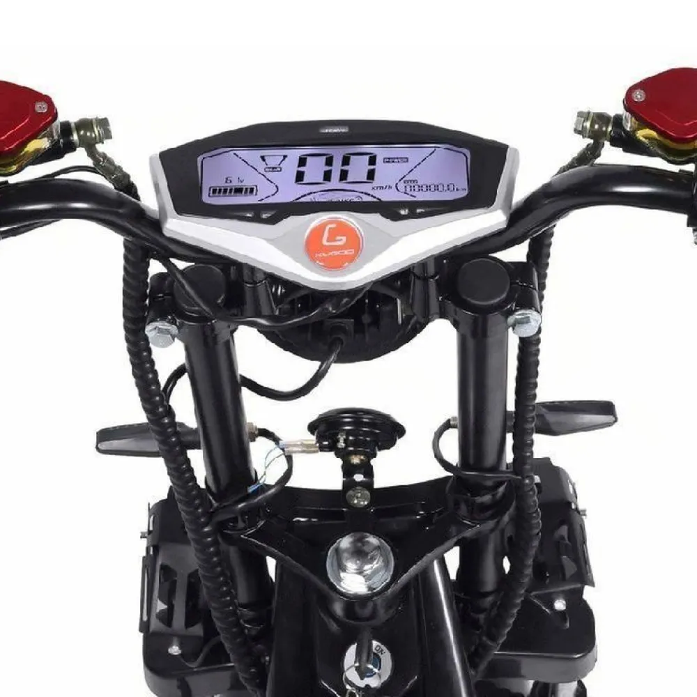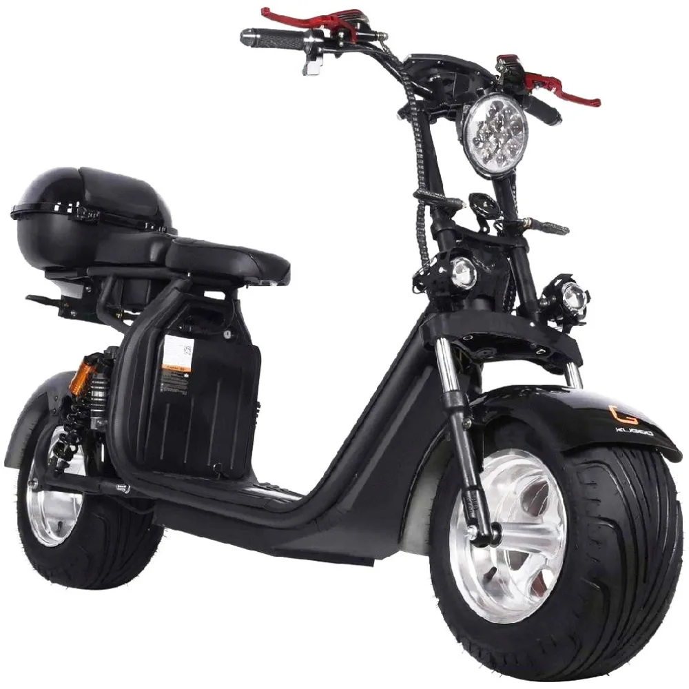 Электроскутер  Citycoco Kugoo C6 – обновленный вариант бренда занимает лидирующие позиции в продажах. Брутальный кричащий дизайн заинтересовал райдеров-экстремалов и любителей рыбалки. Широкая отлично сцепляемые шины обещают отличную проходимость и отсутствие проблем в дороге. Техника создана для езды по бездорожью, не разочарует при преодолении небольших препятствий и путешествии по лесным тропинкам.
