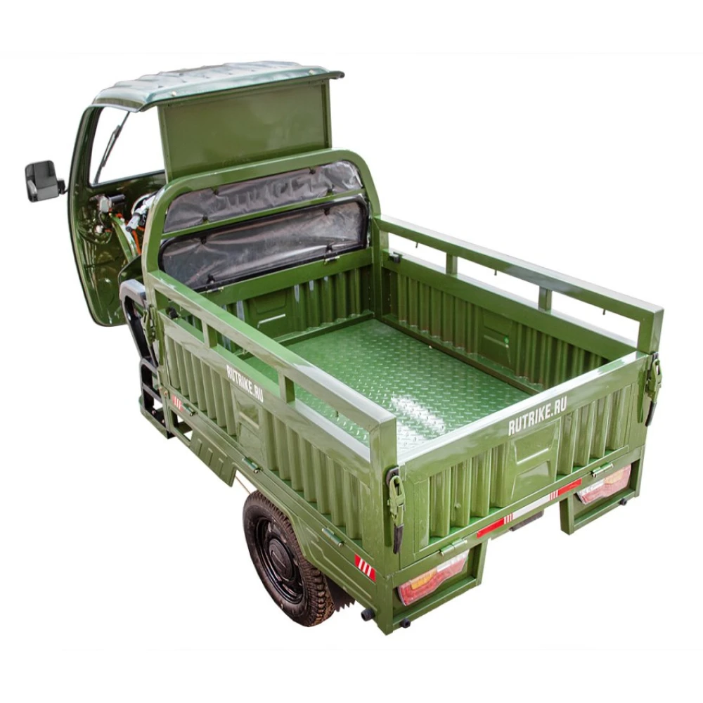 Грузовой электротрицикл Rutrike Гермес 1500 60V1200W темно-зеленого цвета - это надежное и мощное транспортное средство, предназначенное для эффективной перевозки грузов. С его 1200-ваттным двигателем, этот электрический трицикл может развивать скорость до 25 км/ч, что позволяет быстро и надежно доставлять грузы в нужные места.