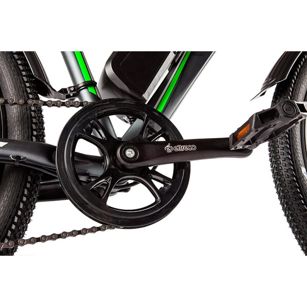 Велогибрид Eltreco XT 750 представляет собой доработанную и улучшенную версию модели ХТ 700. Производители оснастили велосипед  более емким аккумулятором, который обеспечивает запас хода до 50 километров на одном заряде батареи. Расположен аккумулятор под рамой и легко снимается для подзарядки в домашних условиях или офисе. Компактный, но мощный двигатель позволяет развивать скорость до 35 км/час. Такие показатели гарантируют комфортное и мобильное передвижение по городу в течение всего дня. В темное время суток безопасность поездки обеспечивает яркая передняя фара, которая уверенно освещает путь и делает велогибрид заметным для других участников движения. Надежные тормозные колодки с износостойким керамическим покрытием способны быстро остановить транспортное средство даже в экстренной ситуации. Рама выполнена из легкого и прочного алюминиевого сплава и выдерживает нагрузку до 100 килограммов. Пользователи оценят эргономичное сиденье из искусственной кожи и удобные ручки руля, обеспечивающие комфортное положение рук. Велогибрид Eltreco XT 750 отличается стильным и современным дизайном, а его эксплуатационные характеристики позволяют одинаково эффективно использовать его как для поездок по городу, так и для увлекательных загородных велопрогулок.