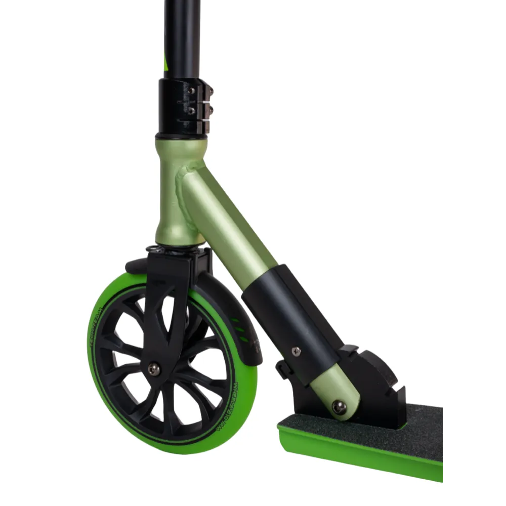Модель оснащена широким (47 см) регулируемым рулем (760-910-965-1115 мм). Имеет спецзажим, исключающий люфт и посторонние шумы. Прочная и надежная при эксплуатации в жестких условиях. Колесная часть – 210 мм, полиуретановая, мало стираемая. Клиренс составляет 55 мм, гарантирует отсутствие дискомфорта при преодолении проблемных участков. Дека – широкая, достаточная для размещения двух стоп. Нескользящая шкурка увеличивает параметры безопасности. Техника предназначена для активного время провождения на свежем воздухе с друзьями и родителями. Безопасная и простая в эксплуатации. При необходимости может трансформироваться в компактные эргономичные размеры. Простота транспортировки обеспечена наличием специального ремешка. Надеемся, вам понравился самокат. Предлагаем приступить к оформлению заказа.
