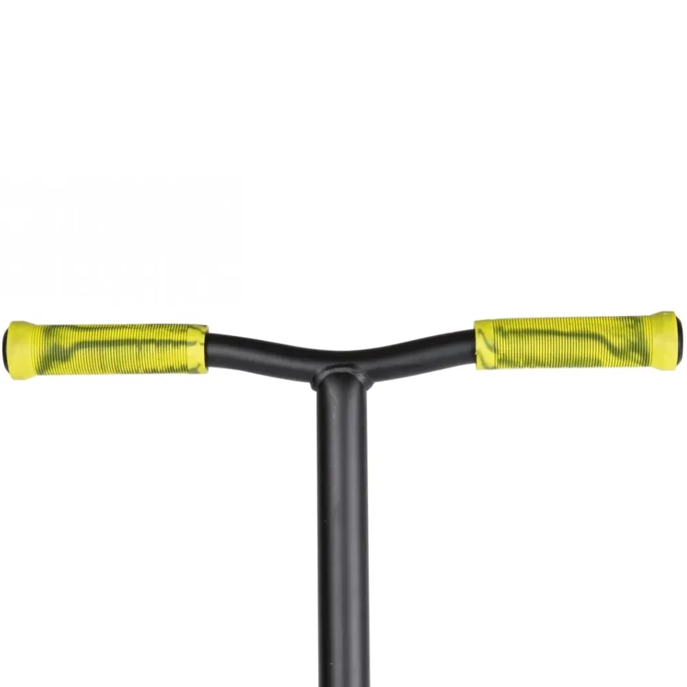 Дизайн самоката будет явно выделяться на фоне других скутеров и лишь подчеркнёт райдера и его стиль. Его Т-образный руль с небольшим изгибом имеет повышенный запас прочности, потому что сделан из высоколегированной стали. Размеры руля подобраны специально для самых маленьких пользователей. Грипсы руля долговечны и выполнены из нескользящего материала. Также руль оснащён барендами, что повышает безопасность райдера. Алюминиевая дека имеет большой запас прочности и покрыт специальной шкуркой, которая обеспечивает отличный контакт с подошвой кед. Она имеет оптимальные размеры, а также возможность установки пег для скольжения. Зажим самоката типа IHC значительно увеличивает прочность узла в сравнении с резьбовым, установленным на аналогах.